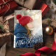 Cartão De Festividades Feliz Natal - Script de Caligrafia Marinho Xadrez