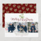 Bonito névoa de aquarela pendura sobre o roteiro de ouro cômico A tipografia de Feliz Natal nestes cartões de natal elegantes. Personalize a mensagem, 3 fotos, nome da família e data. Projetado por Thisnotme©