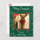 Feliz Natal Snowy Wreath Cartão de Férias Personalizado da Família. Vermelho Clássico e Verde. Modelo está preparado para personalizar.