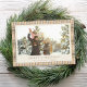 Crie seus próprios cartões de Natal personalizados. Basta adicionar a sua foto favorita da família a este design com fundo de xadrez de cor castanho.