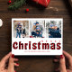 Esta design apresenta um modelo de cartão com fotos tradicional Feliz Natal, com elegante cheque de búfalos clássico personalizado, uma simples tipografia zNatal Xmas, três fotografias com grelha multifotografia, xadrez de búfalos vermelho e preto, estilo personalizado de tipografia rústica moderna, de padrão fofo, um simples layout de vintagem digital, Cartões de foto de Natal rústicos, cartões Xmas alegres