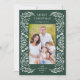 Este cartão verde-escuro de Natal apresenta uma elegante borda verde branca de inverno do que enquadra a foto vertical. O verso oferece texto personalizado para sua mensagem pessoal.