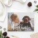 O cartão com fotos de feriado minimalista apresenta a sua foto favorita do ano com um design de sobreposição "Feliz Natal" em branco e um escrevendo de texto simples que você pode personalizar com seu nome ou família e o ano. Um padrão de pontos de abstrato em um fundo bege/bronzeado neutro (pode ser modificado) veste a parte traseira da placa.
