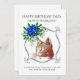 Um belo cartão de aniversário para pai do seu gato, com um rosto de gato doce numa fronteira floral. O texto humorístico diz: "Eu te amava desde o momento em que te vi e depois tu levaste-me para casa".