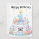 Feliz Primeiro Aniversário com um Bolo de Aniversário Bonito, Flores e a alegria de Espalhamento Número Um, compartilhar alegria, feliz tudo e um feliz sempre! Cartões de natal projetados para iluminar o ano inteiro.