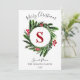 Feliz e brilhante, feliz cartão de Natal. Coroa aquosa, coroa, cartão tradicional inicial. Por favor, personalize-o com os seus detalhes.