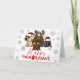 Esses bonitos filhotes de desenho vestem chifres de renas que se enrolaram com as Luzes de Natal e os chapéus de Papai Noel. Atrás do cão ilustrado, os flocos de neve com brilho prateado caem. A dentro da mensagem que o cartão é personalizável para os seus desejos quentes de feriado.