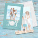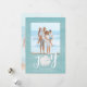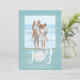 Esta design apresenta uma Cartões de foto de Natal com 2 duas fotos, uma praia engraçada, tropical minimalista simples, design de tipografia com guiões azul turquesa, com alface alegre, na praia, um cartão com fotos de férias da Flórida tropical
