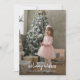 Uma criança, em um charmoso tutu rosa festivo, fica diante de uma árvore de Natal enfeitada com ornamentos brancos, com um olhar maravilhoso, em uma casa moderna e minimalista banhada em pinks suaves, cinzentos e brancos. 'Desejos Feriados' é elegantemente renderizado na tipografia de pincel, abaixo, completando esta cena mágica de feriado. Observe que esta imagem é um exemplo. Você deve substituí-la pela sua própria foto de Natal favorita. O produto acabado está disponível no impressão ou como download digital, ou ambos