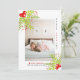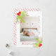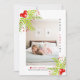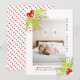 Holly Berry Peace Love Joy cartão com fotos retangular de Natal. Uma design bonito que mostra uma foto, morango oco nos cantos superior esquerdo e inferior direito, o texto "PEACE LOVE JOY" em preto e vermelho e um coração vermelho. O verso inclui um padrão de bolinhas em vermelho e branco. Fotografia © Storytree Studios, Stanford, CA