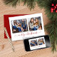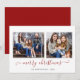 Green Red Script Modern Merry Christmas Photo Holiday Card (Cartão de Férias de Natal Feliz) com duas das suas fotos favoritas e um roteiro simples, mas elegante, saudação de Feliz Natal. As costas estão enfeitadas com um fundo festivo vermelho de inverno. Perfeito para seus cartões de natal este ano! Entre em contato conosco em cedarandstring@gmail.com se precisar de assistência com o design ou produtos correspondentes.
