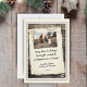 Cartão de Férias de Natal De Manuscrito De Manuscrito De Madeira Rústica. Uma cena rústica com madeira e papel antigo com um roteiro e foto no papel - adicione sua foto e personalize o texto.