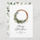 O moderno mínimo de folhagens da coroa de folhagens do cartão de Natal. A mão pintada de eucalipto, folhagem mínima e coroa rattan moderna dão a este cartão de feriado uma sensação luxuosa. Em verdes clássicos, castanhos e cinzentos.