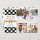 Destaque três fotos com um design de verificação de búfalos preto e branco, intitulado HAPPY HOLIDAYS em uma fonte de papel kraft castanho com folhagem de inverno desenhada à mão e amarrada de forma elegante com um arco marrom-ouro. (DICA DA FOTO: para obter resultados mais rápidos/melhores, escolha uma foto com o assunto no meio e/ou faça um pré-recorte para uma forma semelhante, conforme mostrado ANTES de carregar e ela preencherá o espaço de fotos fornecido perfeitamente.) Entre em contato com o designer se quiser que este design seja modificado ou em outro produto.