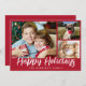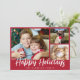 Cartão de saudação de Natal vermelho 3 com fotos e "feriados felizes" escrito em um script de pincel branco na moda.