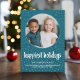 Um design moderno com uma foto de Natal e uma saudação - feriados mais felizes. Adicione uma foto a este design diferente e engraçado para um Cartões de foto de Natal.