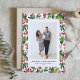 Feliz Natal! Envie seus desejos de feriado mais quentes com nosso cartão de Natal fotográfico personalizável, com um belo design de aquarela de bagas vermelhas de inverno e verde-azul. Este elegante cartão de Natal permite-lhe mostrar a sua fotografia favorita enquanto adiciona um toque pessoal com a sua mensagem personalizada. Perfeito por espalhar alegria festiva para familiares e amigos, este cartão fotográfico de Natal combina beleza sazonal com uma saudação personalizada. Ideal por enviar desejos de Natal a pessoas amadas perto e longe.