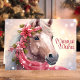 Envie cartões de natal quentes com esta bela carta com um cavalo encantador vestindo uma terra festiva e um cachecol, colocados contra um pano de fundo de neve. A mensagem "Desejos Mais Quentes" acrescenta um toque confortável e sincero, fazer-a a carta perfeita para amantes de os animais e entusiastas equestres.