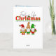 Cartão de Natal personalizado. Pequena casa festiva branca e bonita na floresta de inverno.
