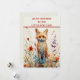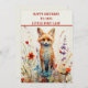Uma raposa muito colorida sentada entre flores silvestres num toco de árvore. Padrão de abstrato para sua filha que está fazendo 10 anos. Verso apropriado nas costas para celebrar este marco.