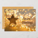 Linda fita de luzes douradas da árvore de Natal e uma estrela grande, sua saudação personalizada na frente e uma mensagem e nomes nas costas. *ADICIONE uma foto no verso também. Selecione Matte para o papel mais pesado e alta definição para melhor qualidade de impressão.