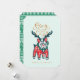 Celebre a época mágica e festiva de férias com nossos cartões de natal planos. Diversão, ilustrativa, design de buldogue francês vestindo suéter de Natal vermelho, algemas e formigueiros de renas. "Keep Cozy" é escrito em letra estilo script em ouro falso. Personalizado com o nome da família e monograma inicial. O verso apresenta um padrão de suéter de Natal branco e verde com um coração branco e um monograma inicial. Toda a trabalho de arte contida nesta divertida e colorida carta de feriado chata de buldogue francesa são obras de arte originais desenhadas à mão pela Moodthology. Você pode personalizar o tamanho do texto, a fonte e o layout para sua própria preferência de design pessoal.