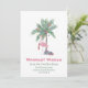Flamingo de Natal com chapéu de Papai Noel e palmeira decorada. Desejos Mais Quentes da nossa nova casa para as Festas de Fim de Ano. O modelo é configurado para que você possa adicionar os detalhes do seu novo endereço e manter contato com amigos e familiares durante a temporada de festas.