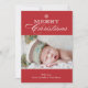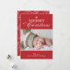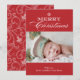 Este design apresenta a frase "Feliz Natal" em tipografia branca com um floco de neve branco acima. Sua foto fica entre o fundo vermelho, o fundo mostrando seu cartões de natal. As costas apresentam um lindo padrão floral vermelho brilhante. Gráficos por Padrões Jazzy.