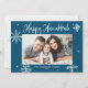 Feliz Hanukkah! Envie desejos calorosos à família e aos amigos com este cartão chanucá. Apresenta flocos de neve brancos e caligrafia moderna. Personalize este cartão de foto Hanukkah adicionando seus detalhes. Este cartão com fotos de flocos de neve de Hanukkah está disponível em outras cores e estoque de papelão.