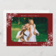 Este simples cartão fotográfico de Natal oferece uma imagem horizontal com cantos arredondados. O design apresenta flocos de neve brancos em um fundo vermelho.