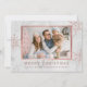 Esta tendência e Cartões de foto de Natal moderno apresentam sua foto pessoal favorita em uma falso quadro de ouro rosa, cercado por flocos de neve correspondentes, em um fundo de mármore.