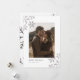 Um cartão de feriado moderno mínimo de prata com flocos de neve com foto e flocos de neve prateados sobrepostos.