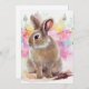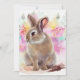 Um belo coelho rodeado por flores em aquarela. Adicione seu próprio texto para personalizar.