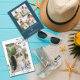 Envie este belo cartão de Natal para seus amigos e familiares com uma moldura floral de inverno com uma foto, um texto "alegre", nome da família e ano, e adicione quatro fotos com sua mensagem pessoal no verso.