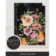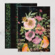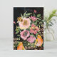 Encontre este cartão de férias oriental fofo com Rosas Cor-de-Rosa e Flores em um fundo preto com tons de rosa e verde.