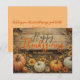 Capture a essência do Dia de Ação de Graças com esta placa de feriado plana personalizável! Apresentando um fundo de madeira rústico e um encantador conjunto de abóboras e folhas de outono, ele expele vibrações acolhedoras em fazendas. O elegante texto "Feliz Dia de Ação de Graças" em laranja vibrante se destaca lindamente, e você pode personalizá-lo com seu nome de família ou qualquer mensagem. Perfeito por enviar desejos sinceros e personalizados nesta temporada!