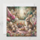 Cartão De Festividades Flores Rosa Borboletas Picnic Páscoa Coelho