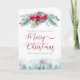 Cartão de Natal dobrado com o tema Floresta de inverno em aquarela, que você pode personalizar com sua mensagem personalizada e/ou dentro de nome(s). O design apresenta uma floresta de árvores de abetos e uma floresta floral com poinsettias, folhagem de inverno, frutos de baga e espinhos de pinho. O texto da primeira parte diz "Os melhores votos para um Feliz Natal e um Ano Novo Feliz". Feliz Natal é feito à mão em tipografia elegante. Por favor, procure na minha loja por coordenar itens, presentes e decoração doméstica.
