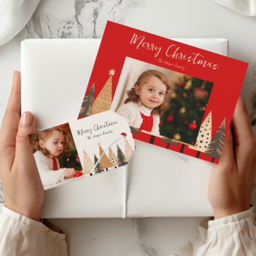 Este cartão fotográfico de Natal apresenta uma festiva design de inverno verde em fundo neutro. Personalize facilmente essas placas usando o recurso de personalização.