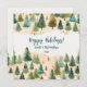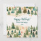 Um design rústico de uma floresta de árvores de Natal a partir de uma antiga safra, uma imagem de aquarela. A frase "Felizes Feriados" do nosso roteiro de turquesa escuro pode ficar se você quiser, ou você pode substituir outro sentimento. Certifique-se de alterar os nomes de exemplo e data para aqueles que são significativos para você.