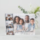 Cartão plano de férias moderno com sua foto dobrada com uma faixa de três fotos quadradas menores, "Feliz Natal" em um roteiro chic e seu nome em uma simples tipografia.