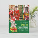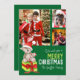 Desejamos-lhe um nome personalizado de Natal muito feliz e quatro das suas próprias fotos Cartão de Natal em vermelho e verde escuro. Personalize com seu próprio nome familiar. Urso Koala com canas doces e chapéu de Papai Noel sentado em uma caixa de presentes, arte aquática e design de cartão por Sarah Trett para www.mylittleeden.com