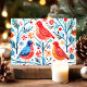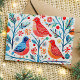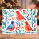 Celebre a época de férias com este charmoso cartão inspirado na arte folk, com aves lindamente ilustradas e designs florais vibrantes. As cores ousadas e os padrões intrincados trazem uma sensação alegre e artesanal, perfeita para enviar desejos quentes de feriado a amigos e familiares que apreciam toques artísticos únicos.