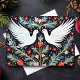 Envie paz e amor nesta temporada de festas com este cartão maravilhosamente projetado com duas pombas elegantes cercadas por intrincados padrões florais em um estilo de arte popular. Perfeito para aqueles que apreciam designs tradicionais, mas artísticos, esta carta traz calor e alegria aos seus Cartões de natal.
