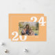 Este cartão com fotos de tendências e Anos novos modernos apresenta grandes números de tipografia branca com uma fotografia horizontal de solteiro. A saudação à frente diz "Feliz ano novo".