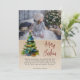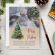 Placa de Festas de Natal de Árvore de Água Festiva de Desenho Artístico Personalizado de Foto Feriado. Desenho festivo de aquarelas coloridas de árvores de Natal com um desejo Feliz de Natal em um roteiro de tendências. Personalize a foto, o texto e a mensagem na frente.