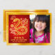 "Feliz ano novo" falsa tipografia de folha de ouro em chinês e inglês, uma imagem espantosa de um cobra de folha de ouro falso gráfico, flores e nuvens, seus nomes, e a foto de sua escolha sobrepõem um padrão tradicional de círculo vermelho asiático e borda de folha de ouro falsa escovada na frente. No verso, uma nuvem e um visual estelar, juntamente com sua mensagem pessoal, sobrepõem um fundo de película dourada esfregado. Sinta o calor e a alegria da temporada de festas sempre que você envia este na moda, porém moderno, personalizado Ano Novo Lunar Chinês 2025 do cartão de saudação de fotos do Cobra. Certifique-se de que alguém especial receba esta saudação! Com os modelos fáceis de usar, na frente adicione a foto de sua escolha e seus nomes, personalize a saudação no verso e você pode personalizar facilmente este cartão com fotos de Ano Novo Lunar. Por favor, me mande mensagens com quaisquer perguntas ou solicitações.