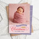Barato cartões com fotos de feriado personalizados impressos com um modelo DIY simples para personalização. Este design colorido apresenta tipografia caprichosa em cores rosa, dourado e mauve. A mensagem dizia "Desejar-te um Natal Muito Feliz". Adicione sua foto de família no topo com uma sutil borda de neve. Use as ferramentas de design para editar as fontes e as cores. O lado inverso tem um padrão de distribuição de coordenação ou usa o espaço para adicionar mais fotos e texto.