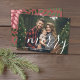Folhas botânicas verdes e padrão de bagas atrás. Utilize uma imagem com o sujeito, de preferência, no meio ou na direção do topo. Uma foto mais escura funciona melhor com esta camada branca. Faça uma saudação de Feliz Natal única e moderna com uma tendência e um padrão alegre nas costas.