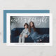 Que seus dias sejam Felizes e grandes fotos horizontais na frente - A design de trás inclui um azul-oceano suave de cor sólida. Você pode mudar essa cor na área de design avançado. Utilize uma imagem com o sujeito, de preferência, no meio ou na direção do topo. Uma foto mais escura funciona melhor com esta camada branca. Faça uma saudação de Natal feliz e única.